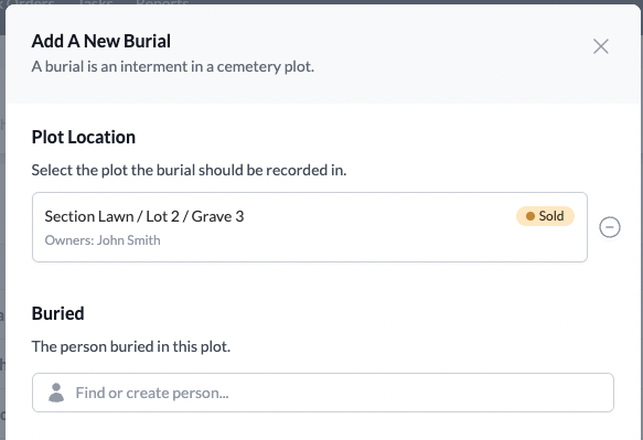 - When adding a new burial, you’ll be prompted to link it to a Person.