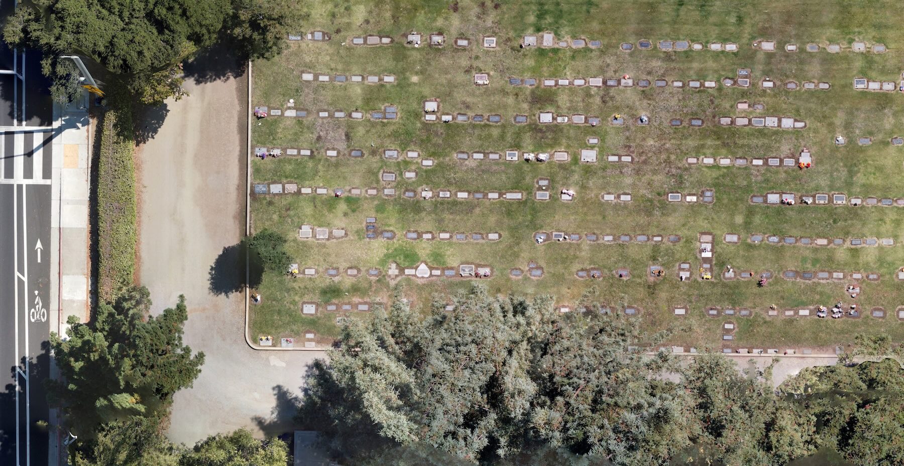 A flight path is created to cover the cemetery from above with consistent overlap between images.